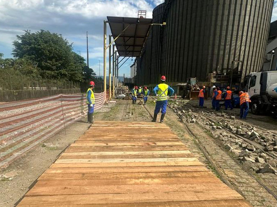 A TMK Engenharia tem orgulho em apresentar sua atuação na obra de remodelação da linha férrea da T-GRÃO, localizada no Porto de Santos/SP. Este projeto estratégico envolve a modernização da malha ferroviária interna da unidade, com foco na substituição e atualização da superestrutura dos trilhos, dormentes e fixações, além da preparação do piso intertravado para garantir maior segurança, eficiência e durabilidade nas operações logísticas da empresa.