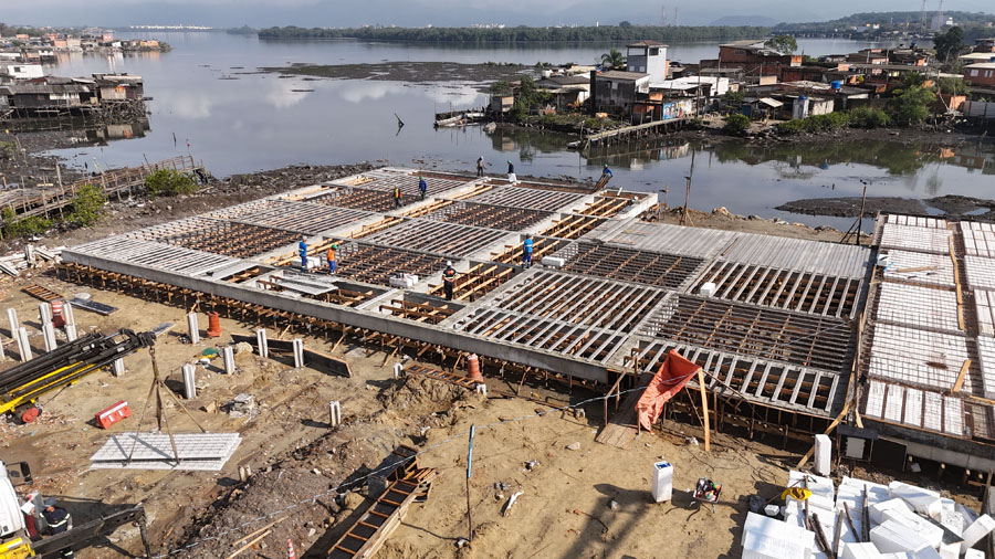 A superestrutura do Parque Palafitas é composta por sistemas estruturais híbridos em concreto armado, blocos e painéis de laje pré-moldados, combinando rapidez de execução com resistência mecânica e versatilidade arquitetônica. Essa estrutura será para as futuras Edificações como novas residências, centros de apoio comunitário, áreas administrativas e espaços multiuso pensada com foco na acessibilidade que reforça o compromisso da TMK com a sustentabilidade e o impacto social positivo.